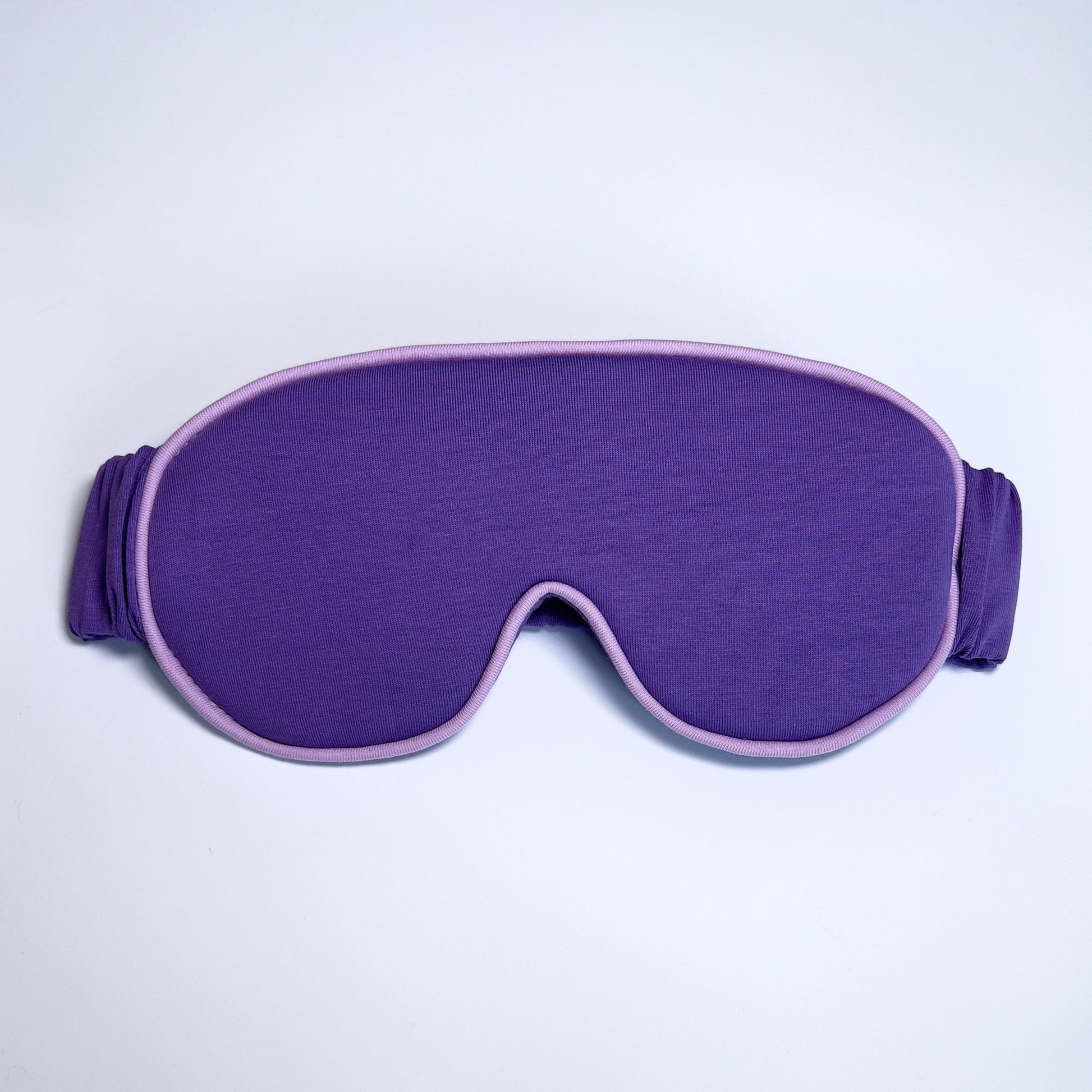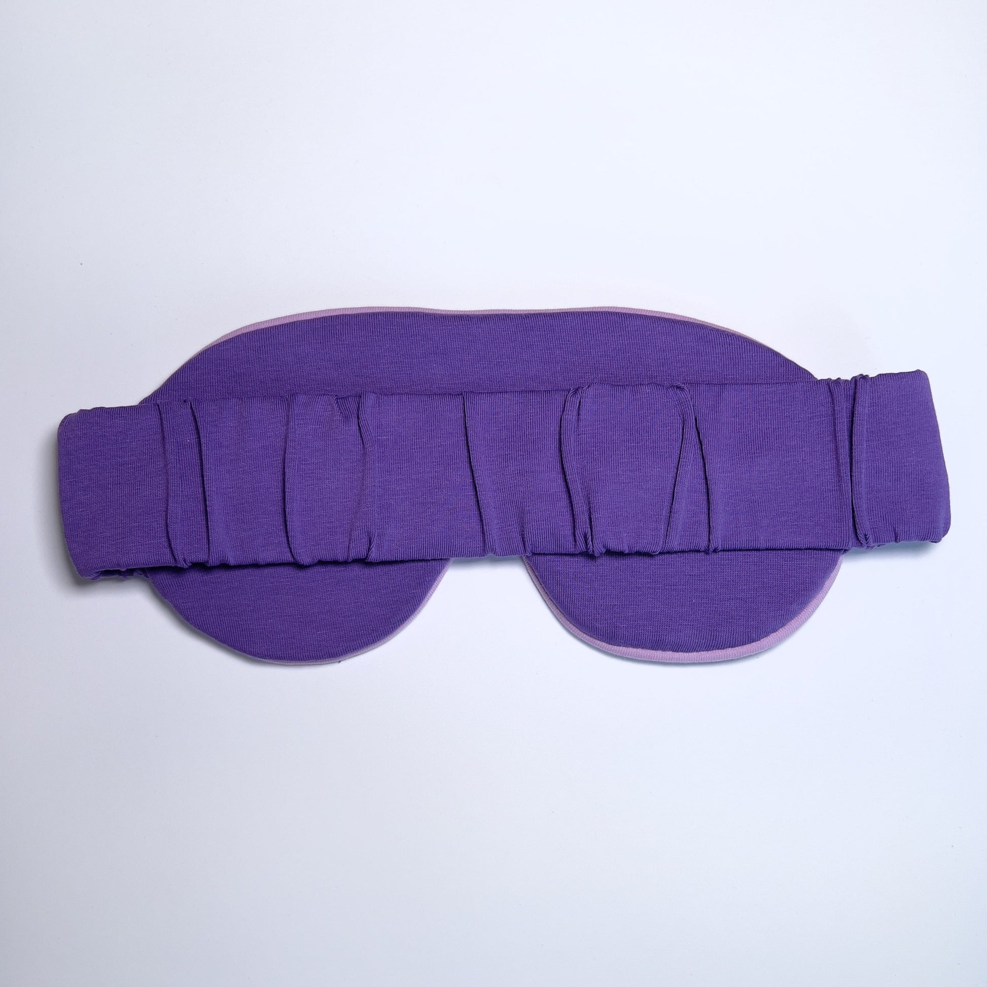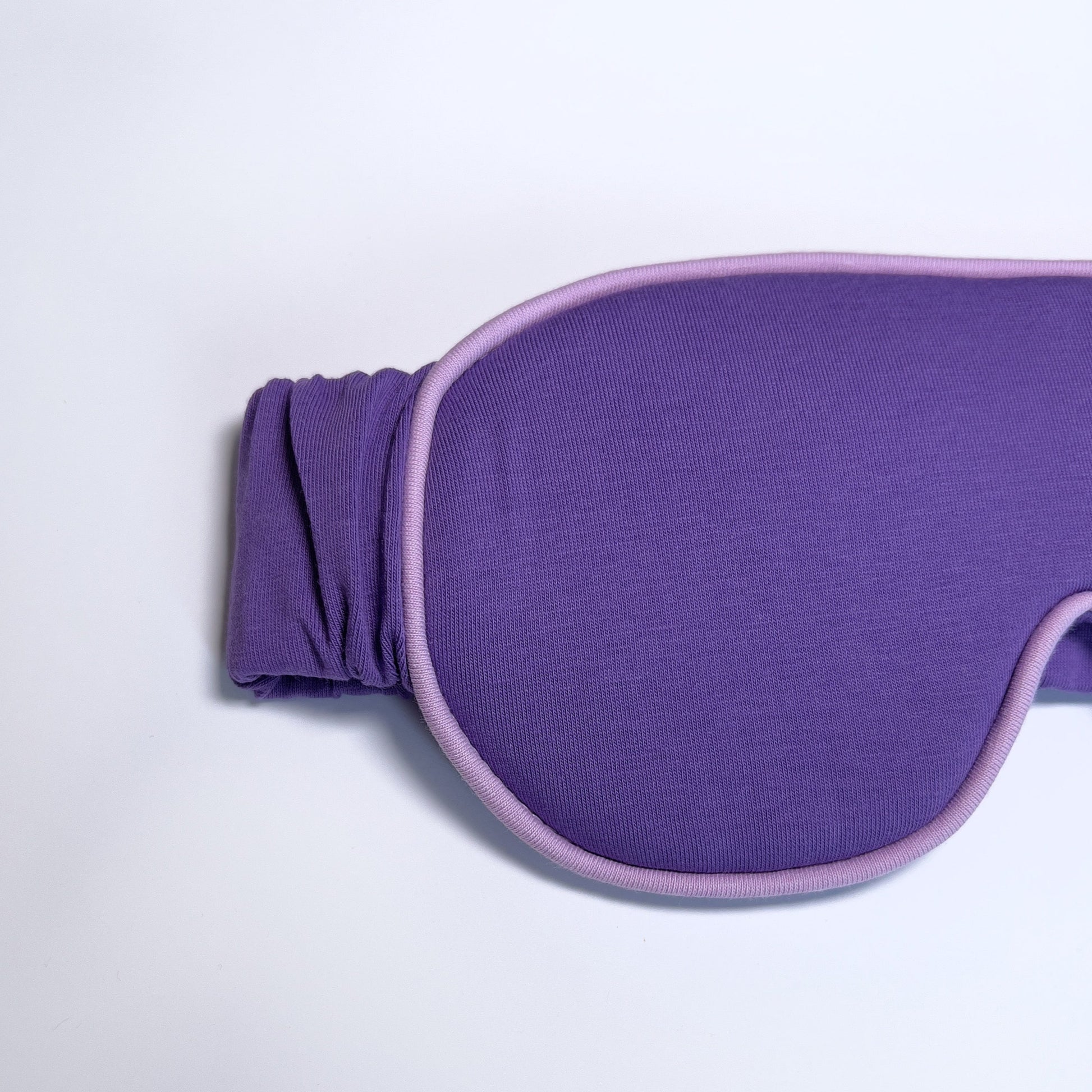 Eine zart violette Schlafmaske mit hellfliederfarbener Umrandung, inspiriert vom beruhigenden Duft der Lavendelfelder. Weich, bequem und lichtdicht – perfekt, um deinem Schlaf Harmonie und Ruhe zu schenken.